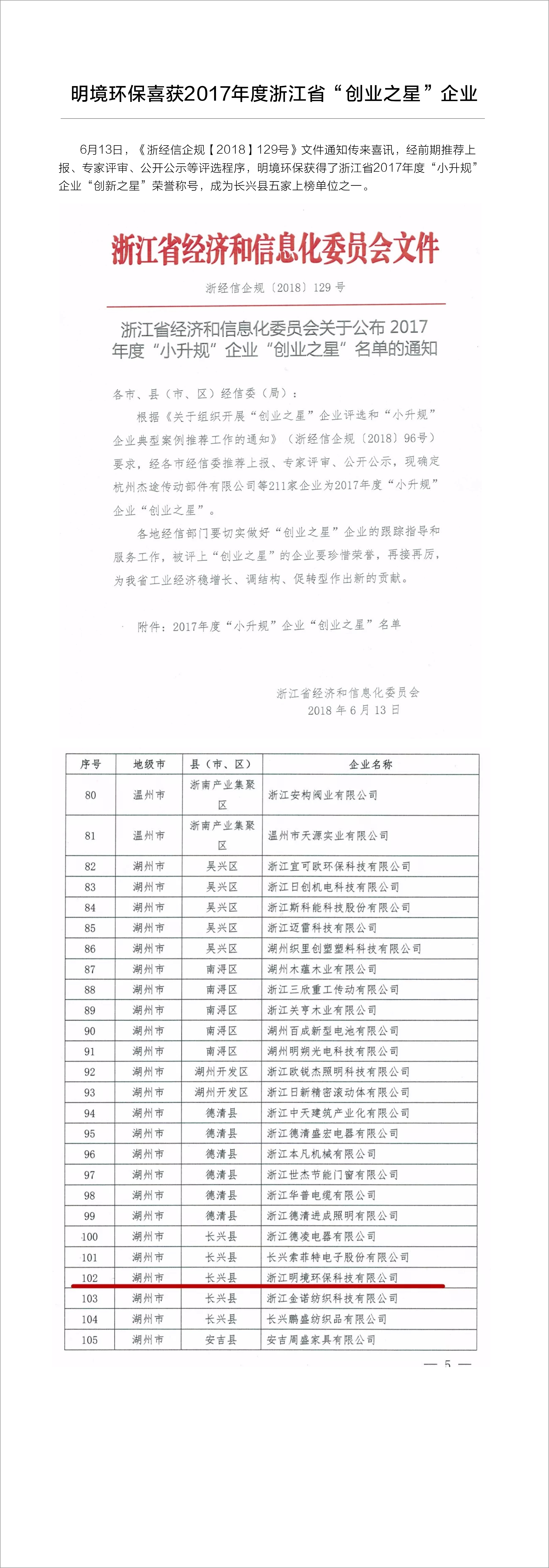 明境環保喜獲2017年度浙江省“創業之星”企業稱號