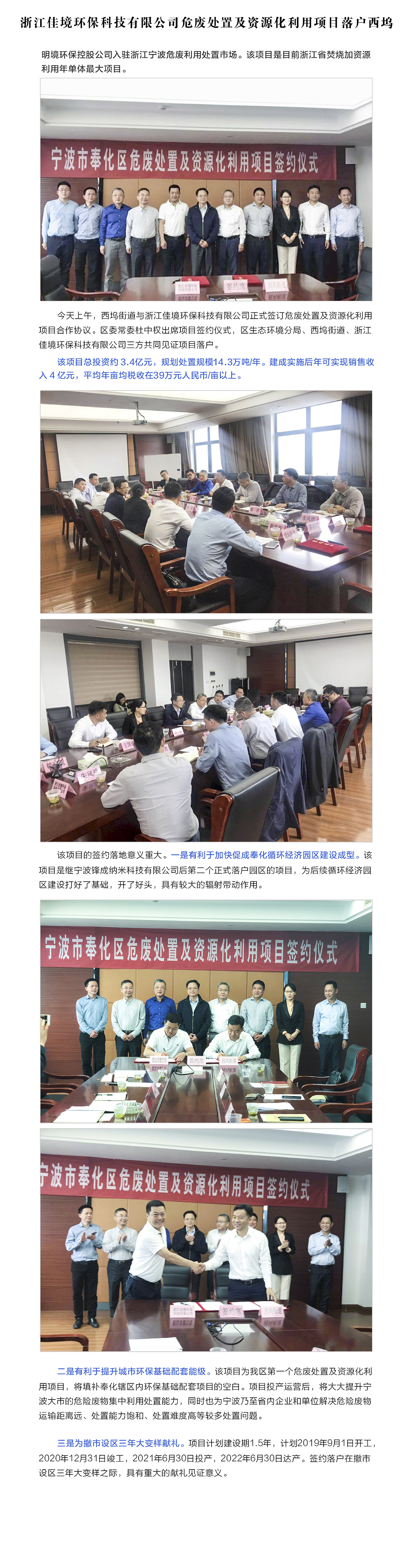 浙江佳境環保科技有限公司危廢處置及資源化利用項目落戶西塢