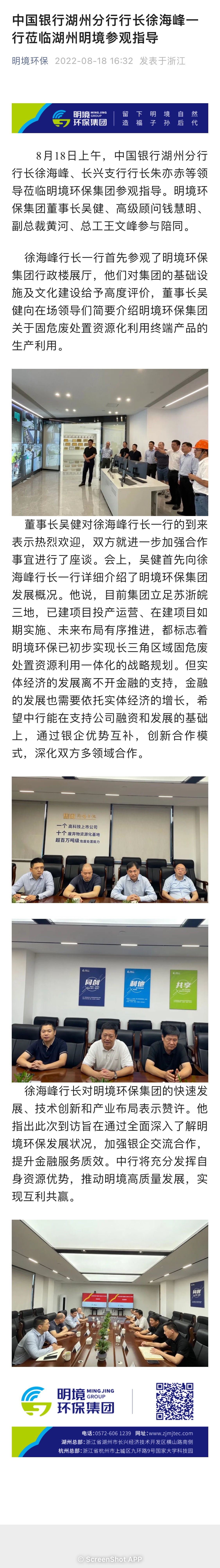 中國銀行湖州分行行長徐海峰一行蒞臨湖州明境參觀指導