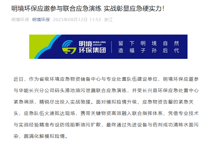 明境環保應邀參與聯合應急演練 實戰彰顯應急硬實力!